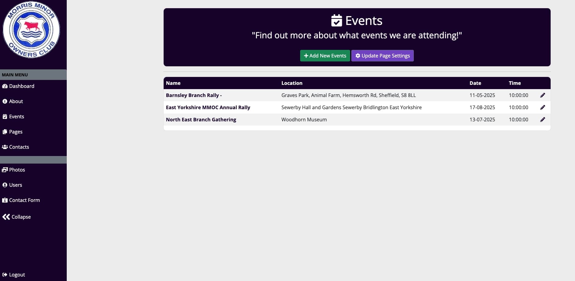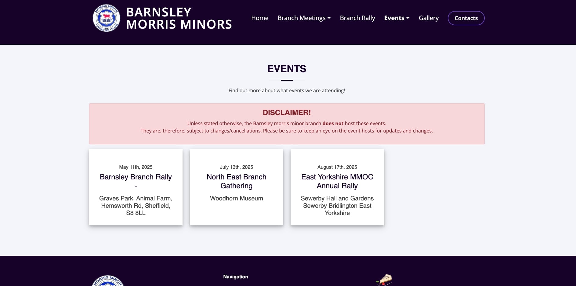 The website for the Barnsley branch of the "morris minors owners club" came about via a request from my dad, who has been a proud member of their branch for some time now.